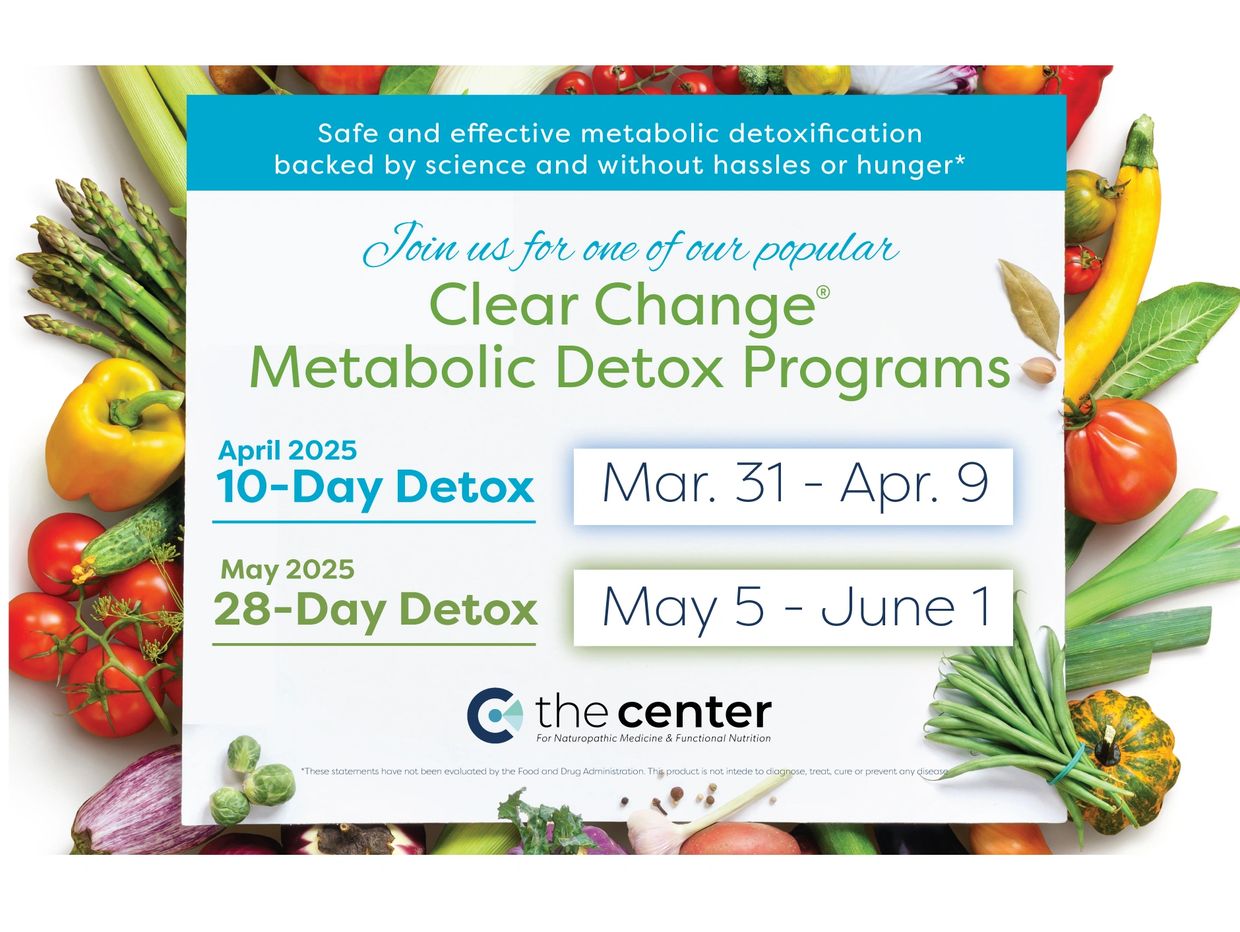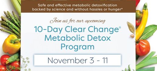 The 10 Day Clear Change® Program begins with the initial group webinar live on Wednesday, March 26th at 6:30 pm.
