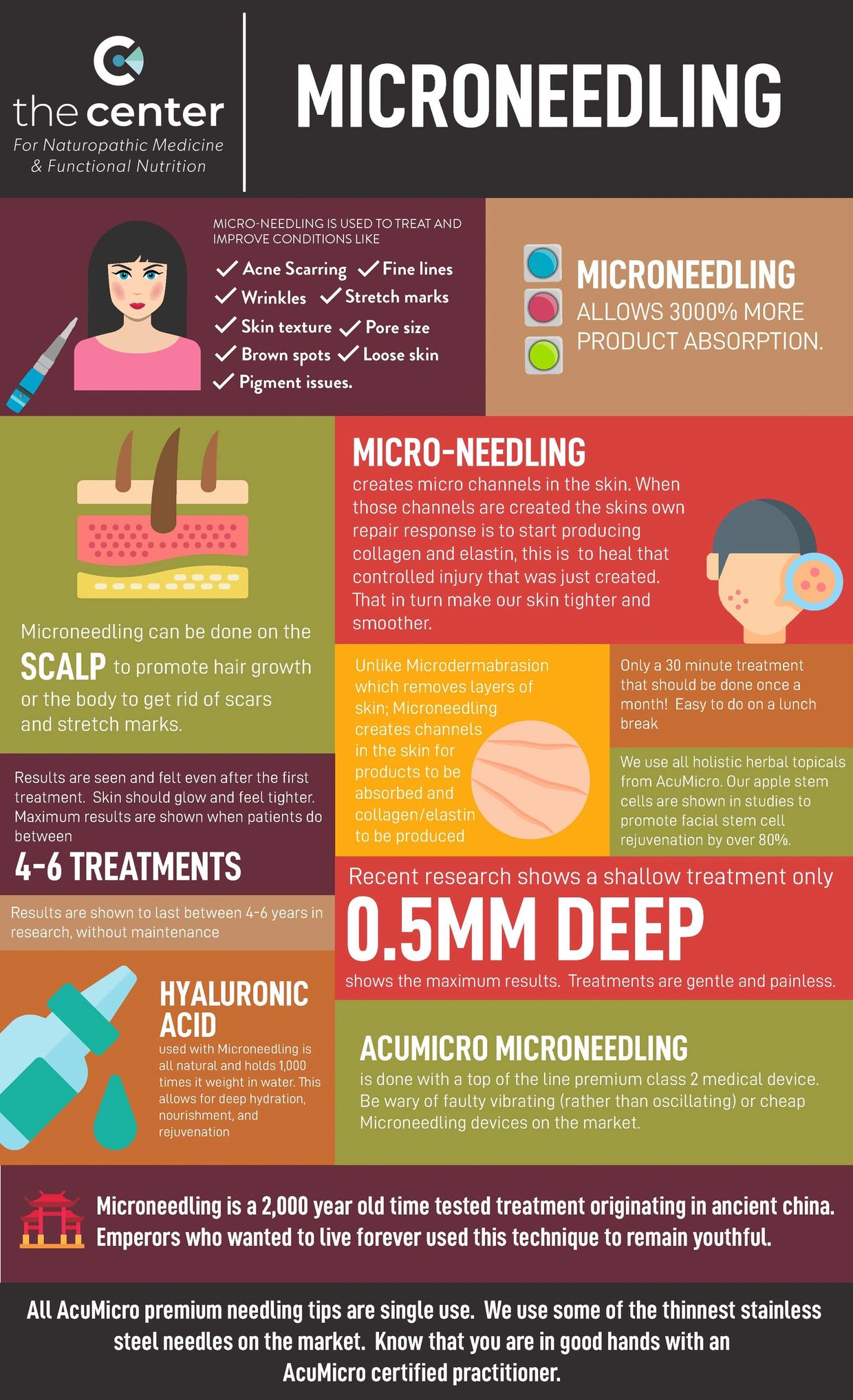 Individuals of all ages can benefit from micro-needling depending on your skin care issues and goals. Individuals concerned about early signs of aging, such as fine lines and wrinkles or acne scars, can benefit from micro-needling. You may be an ideal candidate for this procedure if you have certain skin concerns that haven’t responded to home treatments or other types of dermatologic procedures, such as peels. This may also be a final step before considering cosmetic surgery for anti-aging and other concerns. Our practitioners are certified and holistic based to create an individual skin care regime that considers all of your skin care issues, goals and medical history.
